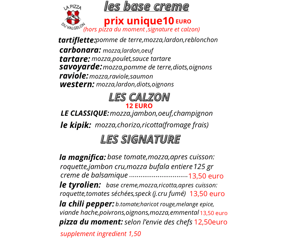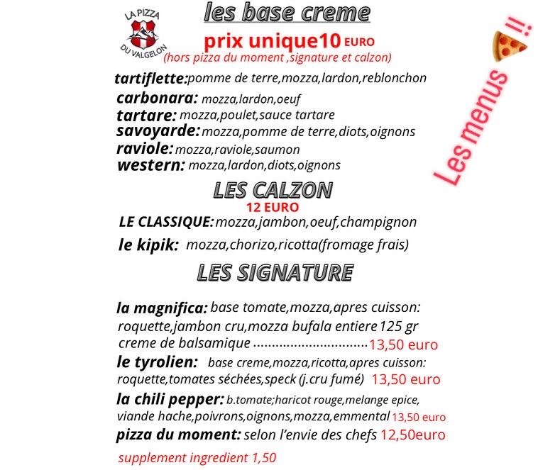 LA PIZZA DU VALGELON Menu